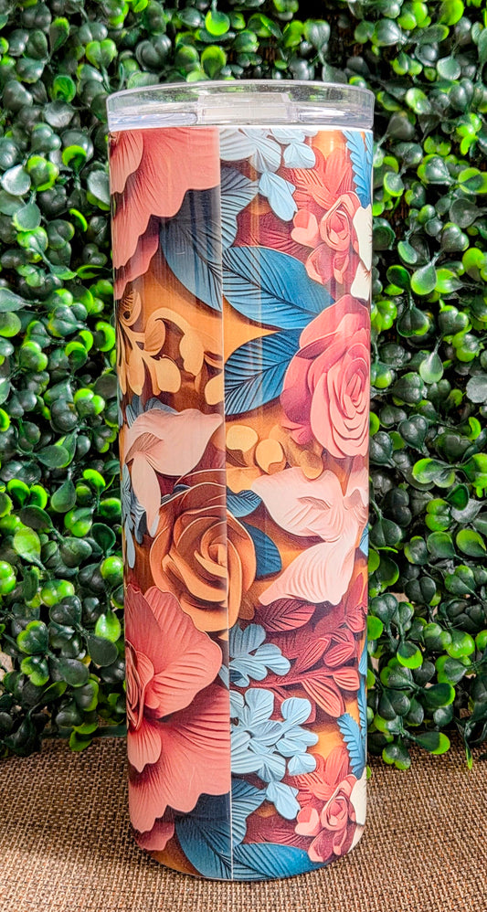 Floral Rose 20oz Tumbler – Vintage Botanical Stainless Steel Cup