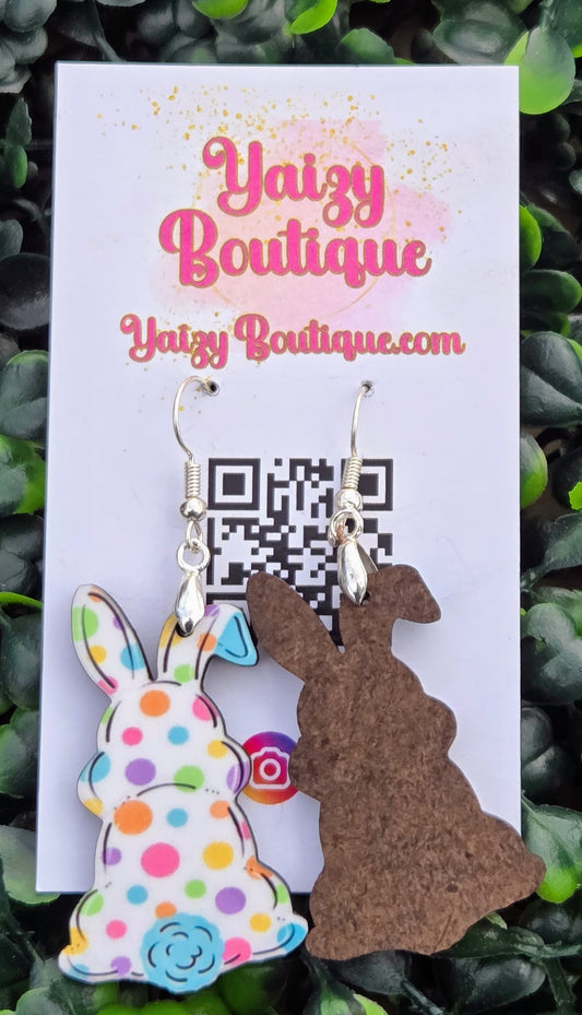 Polka Dot Bunny Earrings – Handmade Easter MDF Wood Earrings