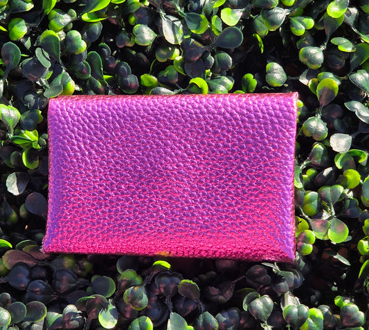 Handmade Metallic Pink Mini Wallet | Faux Leather Coin & Card Holder | Small 4x4 Snap Wallet