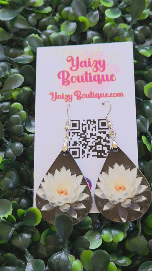 White Lotus Flower Teardrop Earrings – Handmade Lightweight Dangle Jewelry