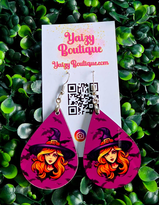 Witch Teardrop Halloween Earrings – Handmade Lightweight Jewelry