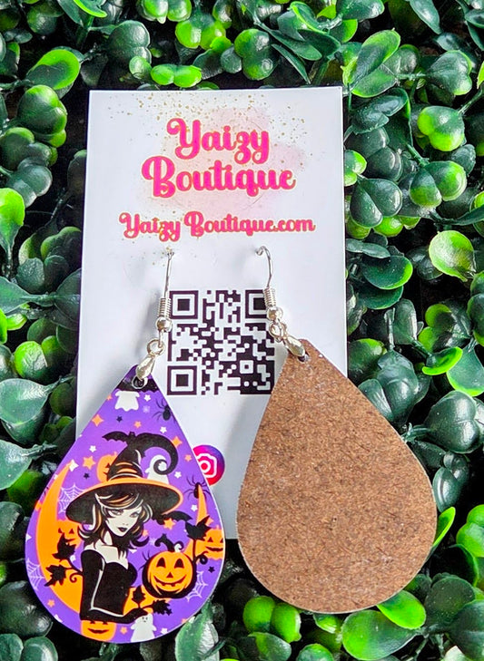Purple Witch Halloween Earrings – Handmade Spooky Teardrop Jewelry