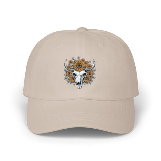 Sunflower Bull Skull Dad Hat – Western Boho Floral Skull Baseball Cap, Rustic Country Cotton Hat