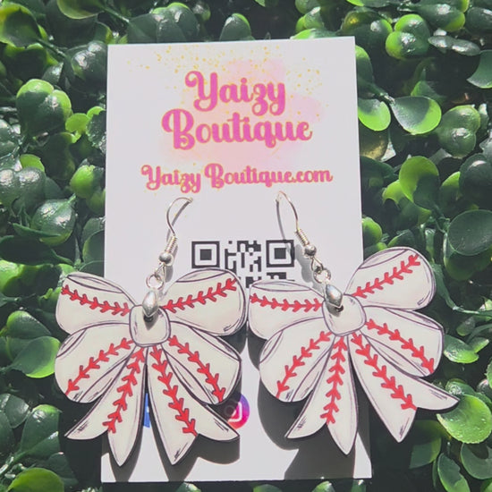 Cheer on your favorite team in style with these handmade baseball bow earrings! Featuring a sporty red-stitch bow design on lightweight MDF wood, they’re perfect for game day, baseball moms, and sports fans. Nickel-free stainless steel hooks make them comfortable and hypoallergenic for all-day wear.