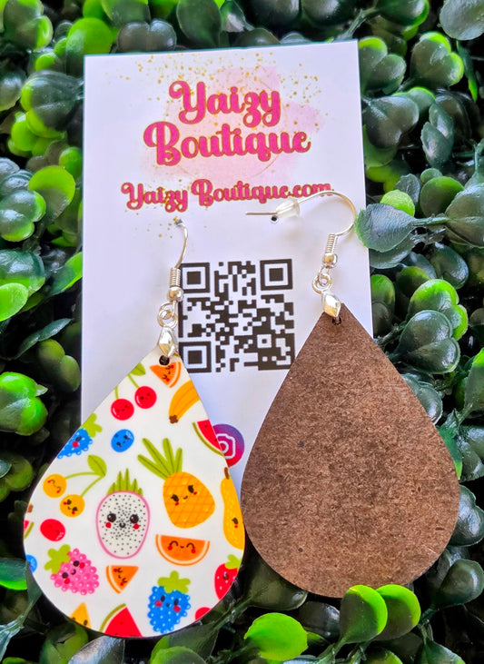 Handmade Fruit Teardrop Earrings – Kawaii Summer Fruit Design – Lightweight MDF Wood Jewelry