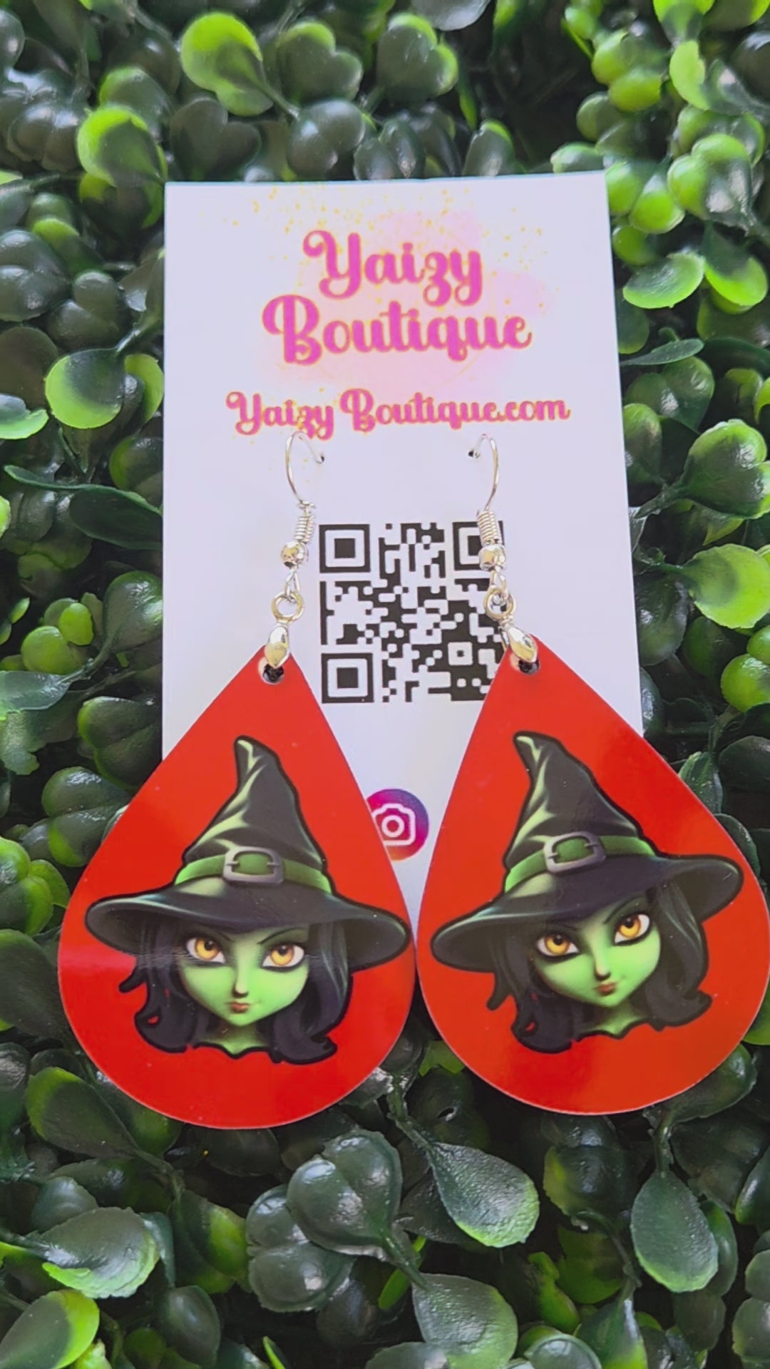 Witch Emoji Halloween Earrings – Handmade Red Teardrop Spooky Jewelry
